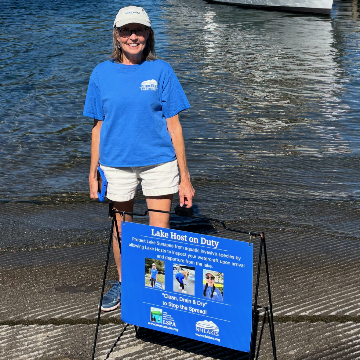 There are four public boat ramps on Lake Sunapee and one private ramp open to the public to access the lake at Sunapee Harbor, Georges Mills, Mount Sunapee State Park (State Beach), Blodgett Landing and Burkehaven. These ramps are staffed May through September with Lake Hosts who perform courtesy boat inspections looking for and removing any aquatic invasive species (AIS). Click here for a map of public ramps staffed by Lake Hosts.